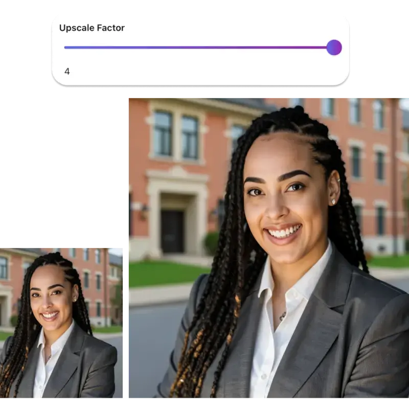 Enhance image quality up to 4x resolution without losing detail. Transform low-resolution photos into crisp, print-ready images perfect for large format displays, high-quality prints, or detailed professional use. Our AI preserves and enhances facial features while dramatically improving overall image quality.